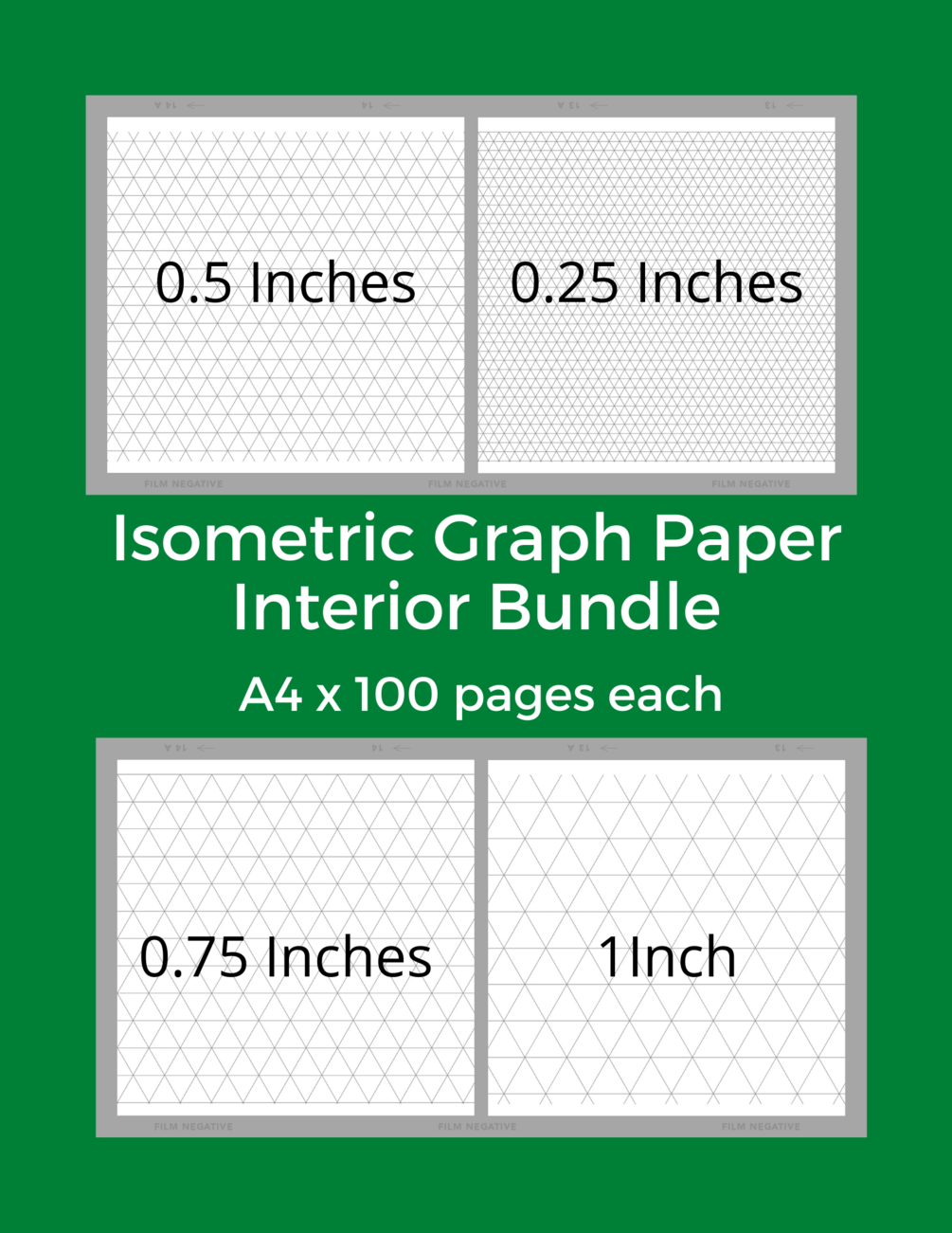 4 different sizes of Isometric Paper Interiors. A4, 120 Pages each. PDF files.